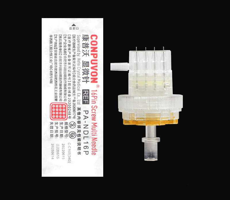 There are 5pin needle special for scalp injection. Not only fit for hycoox scalp mesotherapy.But also work for handle operation injector as well. All 9pin needle work for facial treatment. But there is more advantage 16pin needle. It carry more averapy treatment. However small size needle reduce patients pain and skin damage. 32G and 34G needle differences on artwork. In general 34G more expensive than 32G. But over 90% suppliers only provide 32G.