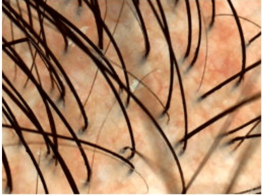 50X lens parallel polarized light analysis hair size, hair density and scalp sensitivity