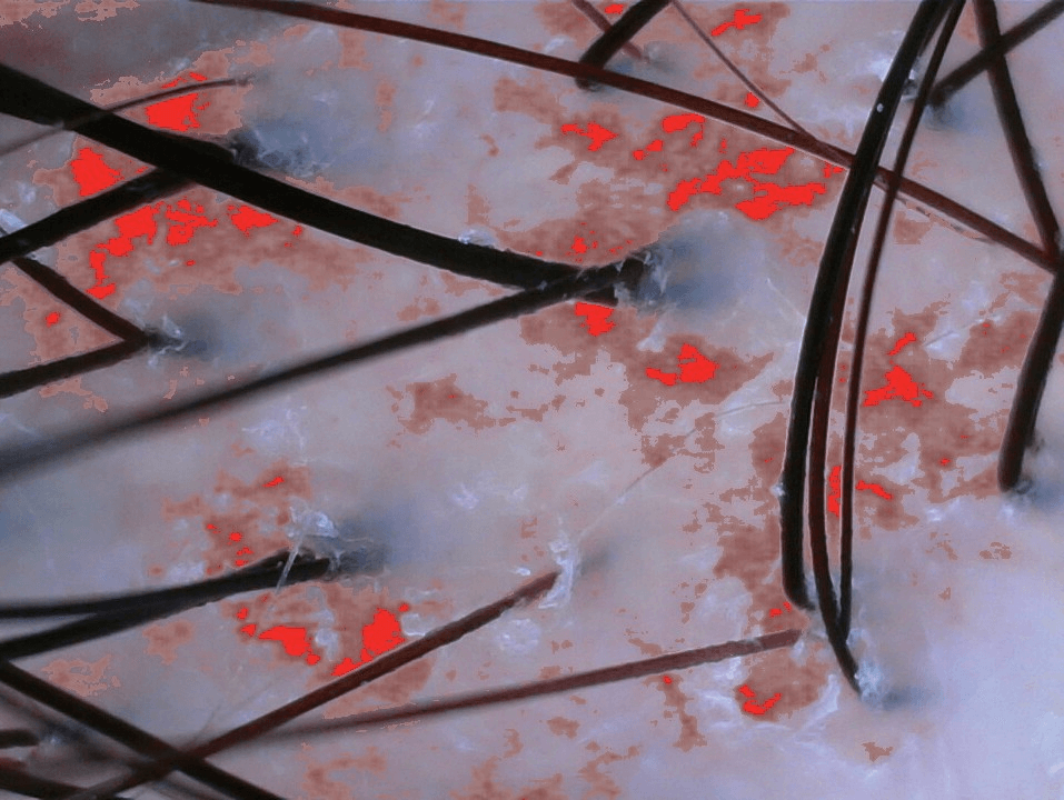 The distribution of red blood cells could be intuitive view under composite spectroscopy and AI algorithm. scalp sensitivity, redness, deep inflammation problem more abvious.