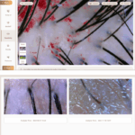 After capturing image will enter automatic analysis by AI (Artificial intelligence) technique. Such as hair density will mark and calculate hair follicle number and hair quantity under each hair follicle to get accurate hair density date. Sensitivity according to blood vessel and redness under scalp dermis situation and scanning date by sensor to giving report.