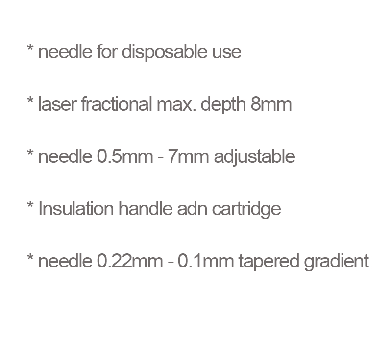 Microneedling combines with RF energy create laser fractional. Under the control of system, all insulating needle sudden passing through skin epidermis.