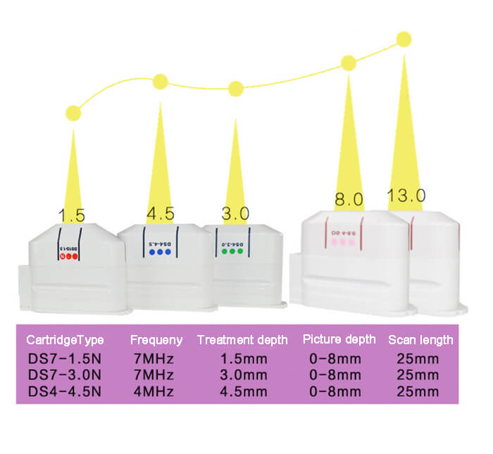 4.5mm: The power reaches the SMAS layer to make heat oagulation of SMAS,
