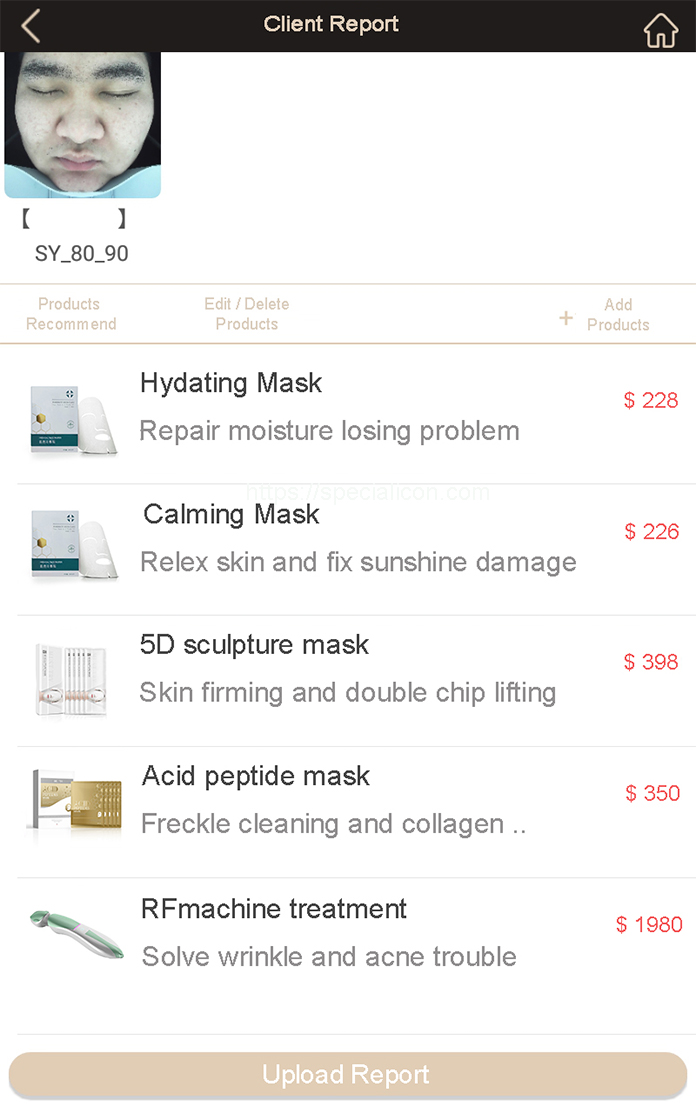 From the capturing picture, clients could see the skin problem from big size picture. 20 million pixel solution camera capture all details very clearly. Any problem would all display to clients face.
